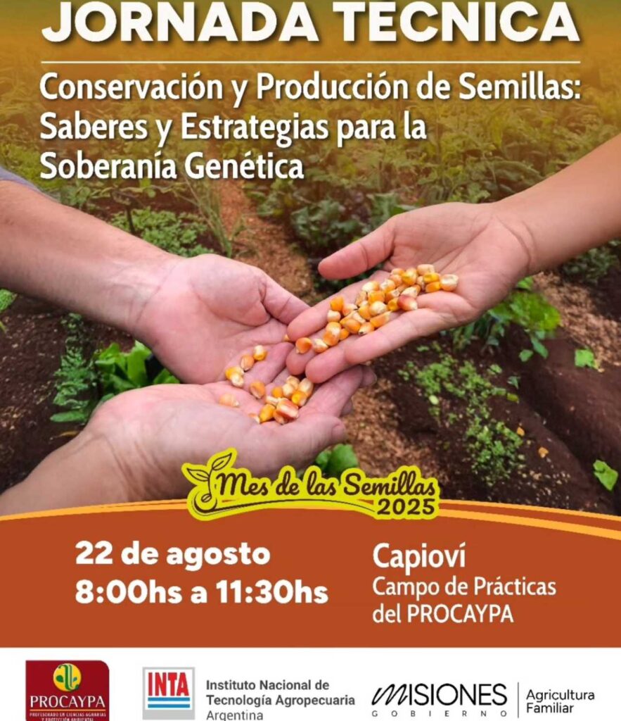 El próximo 22 de agosto, a partir de las 8 hs, se realizará en el Campo de Prácticas del PROCAYPA, en la localidad de Capioví, una jornada técnica destinada a fortalecer conocimientos y prácticas vinculadas a la conservación y producción de semillas. La actividad, organizada en el marco del Mes de las Semillas Nativas y Criollas, es impulsada por el Ministerio de Agricultura Familiar, el Instituto Nacional de Tecnología Agropecuaria (INTA) y el PROCAYPA. El encuentro busca consolidar estrategias que permitan garantizar la soberanía genética y la diversidad productiva.  Durante la jornada se compartirán saberes y experiencias, con el propósito de promover acciones orientadas a resguardar, multiplicar y mejorar semillas nativas y criollas, fortaleciendo así el patrimonio genético y cultural de las comunidades productoras. Los link de inscripción se encuentran en las redes sociales de Secretaria de Estado de Agricultura Familiar.