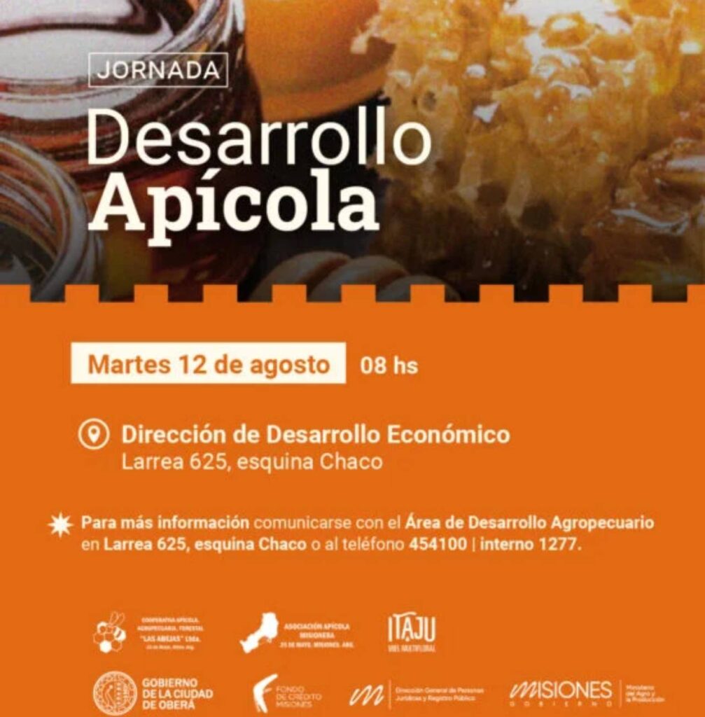 El próximo martes 12 de agosto, a partir de las 8:00 horas, se llevará a cabo una Jornada de Desarrollo Apícola en la sede de la Dirección de Desarrollo Económico (Larrea 625, esquina Chaco), en la ciudad de Oberá.