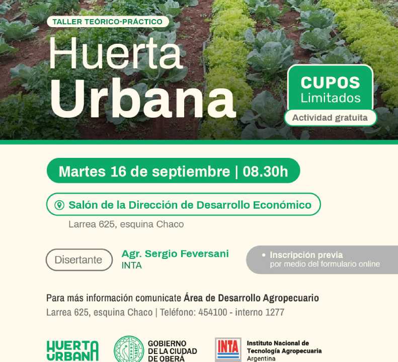 Organizan: Gobierno de la Ciudad de Oberá – INTA – Programa Huerta Urbana.