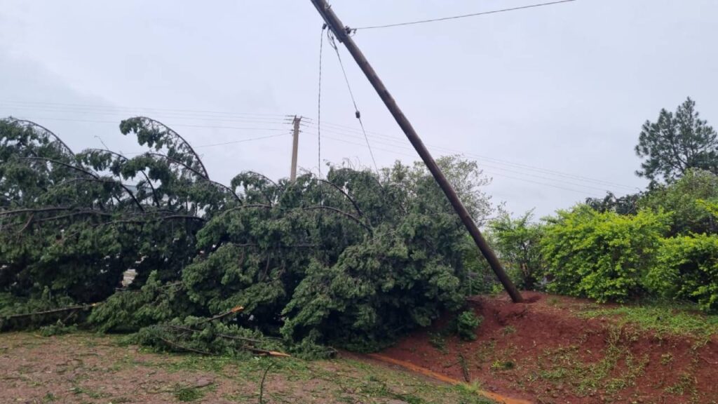 Energía de Misiones SA emitió un comunicado en el cual informa que a raíz de la tormenta “las localidades de San Vicente, El Soberbio, San Pedro, Pozo Azul y Aristóbulo se encuentran afectadas en el servicio eléctrico, debido a la caída de una torre de alta tensión entre las localidades de Dos de Mayo y San Vicente, y más de 40 postes de líneas de media tensión”.