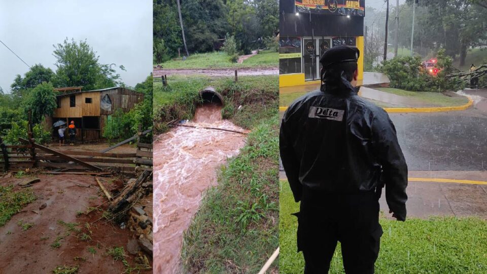 La copiosa precipitación pluvial generó múltiples intervenciones policiales por anegamientos y desbordes de arroyos en Misiones