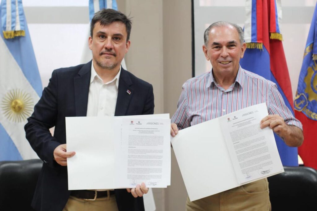 El intendente de Posadas Leonardo Stelatto suscribió esta mañana un Convenio Marco de Colaboración Recíproca con el ministro de Cambio Climático, Gervasio Malagrida, en el que se acordó potenciar las capacidades regionales y abordar de manera efectiva los desafíos ambientales y climáticos que enfrenta la región.