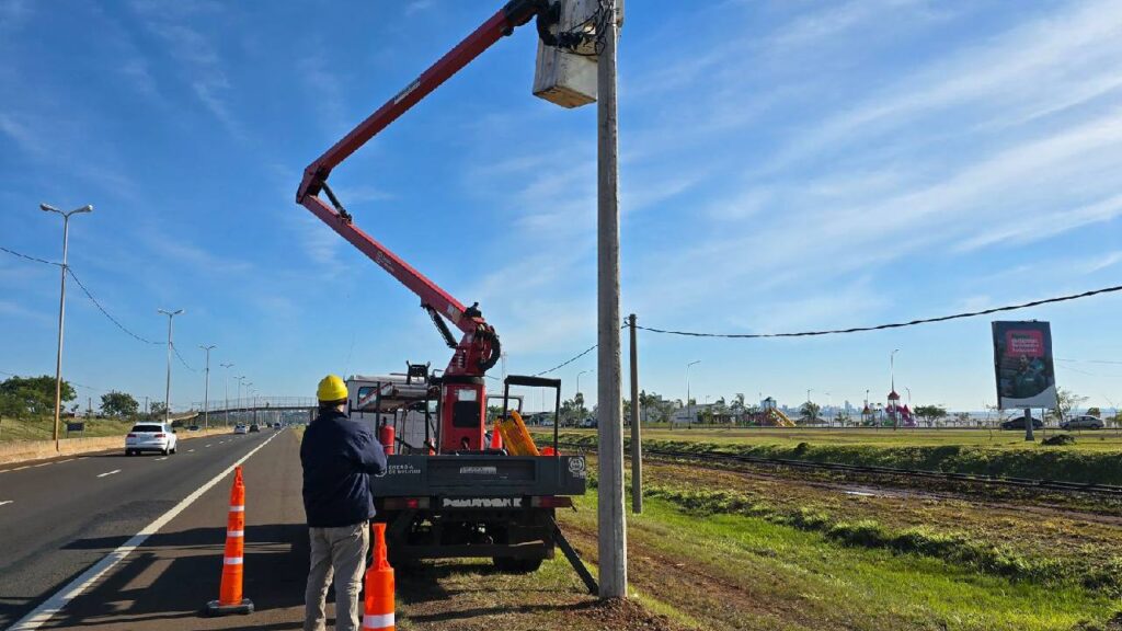 En un trabajo conjunto entre Energía de Misiones y la Municipalidad de Posadas, avanzan las tareas de reparación y mantenimiento del sistema de alumbrado público sobre el acceso sur frente al Complejo “Costa Sur”, en un tramo que abarca aproximadamente 5 kilómetros desde el puente “Juan Domingo Perón» hacia el centro de la ciudad de Posadas