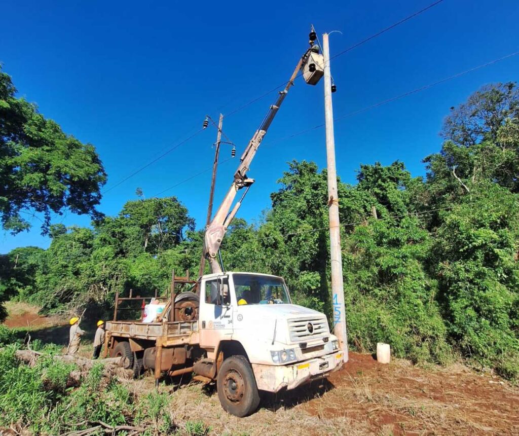 Energía de Misiones continúa con su plan integral de mantenimiento de líneas eléctricas en el interior de la Provincia. En ese marco, se avanza con el reemplazo de postes de madera por estructuras portantes de hormigón para el refuerzo de la línea de 33kV que corre paralela a la Ruta Provincial Nº 17, en el tramo de 51 kilómetros que une Eldorado con Pozo Azul. Esta semana, los equipos trabajaron en la localidad de Santiago de Liniers, después de culminar el refuerzo de la línea en la localidad de 9 de Julio.