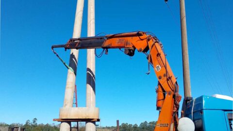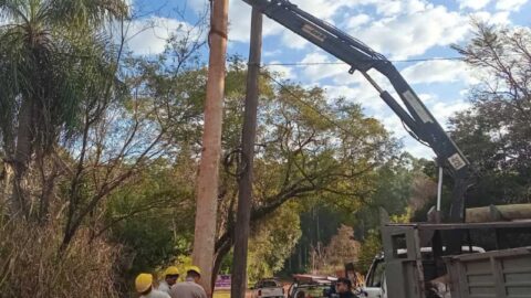 Trabajan en recambios de postes de energía en Garupá