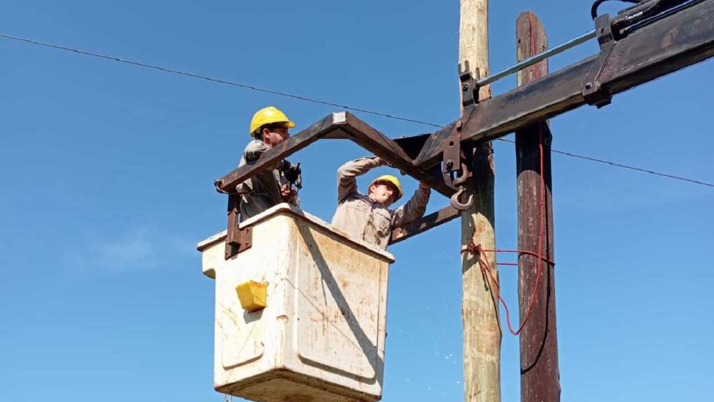 Asimismo, en Colonia Lanusse, las cuadrillas del distrito de Wanda reemplazaron dos postes con derivación en una línea de 7,6 kVA y el cambio de un seccionador, tareas que fortalecen la infraestructura eléctrica local.