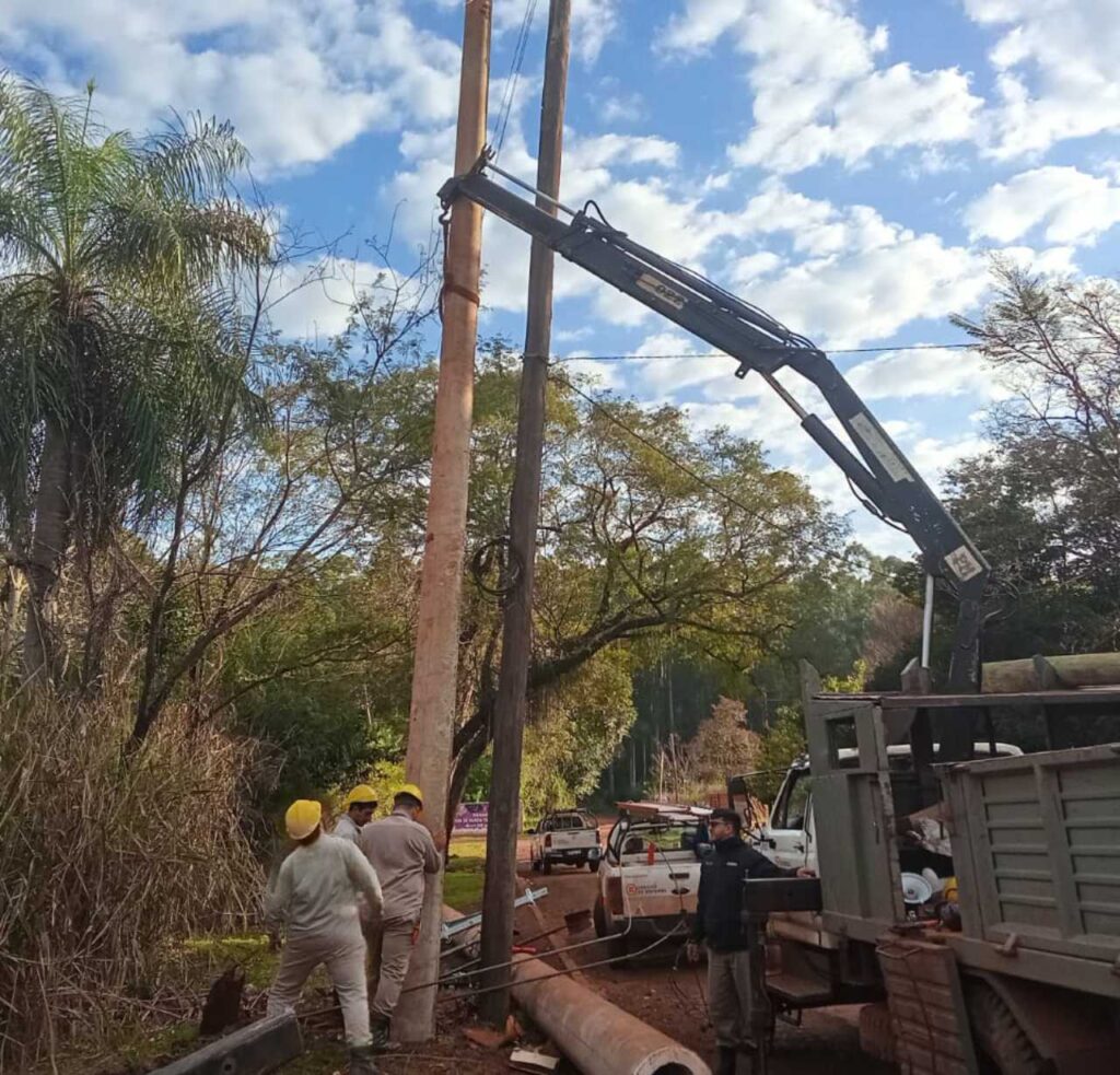 Energía de Misiones continúa con su plan de mejoras en distintos distritos del interior provincial. En esta ocasión, las tareas se llevaron adelante en Puerto Wanda, donde se reemplazaron postes de madera por estructuras de hormigón armado en líneas de baja tensión, sobre la intersección de la avenida Leandro N. Alem y Florida.