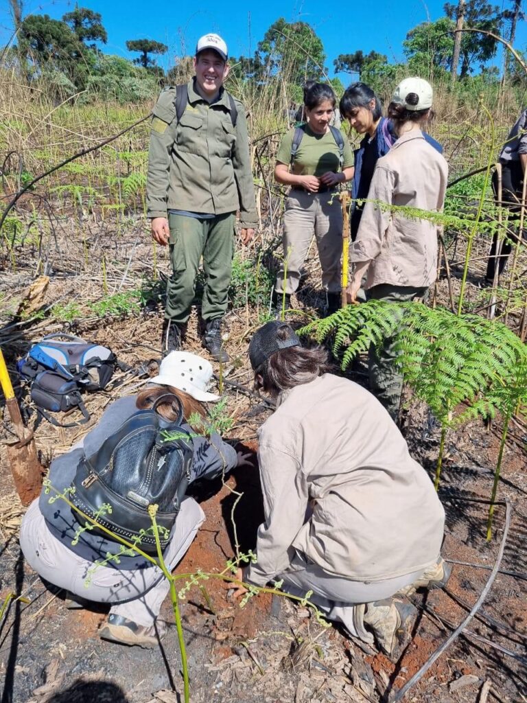 Guardaparques del Parque Provincial de la Araucaria y 23 estudiantes del segundo año de la carrera Técnico Universitario Guardaparque, que dicta la Facultad de Ciencias Forestales de la Universidad Nacional de Misiones, realizaron actividades de restauración del sector del área natural protegida de San Pedro afectado por el incendio registrado en agosto pasado.