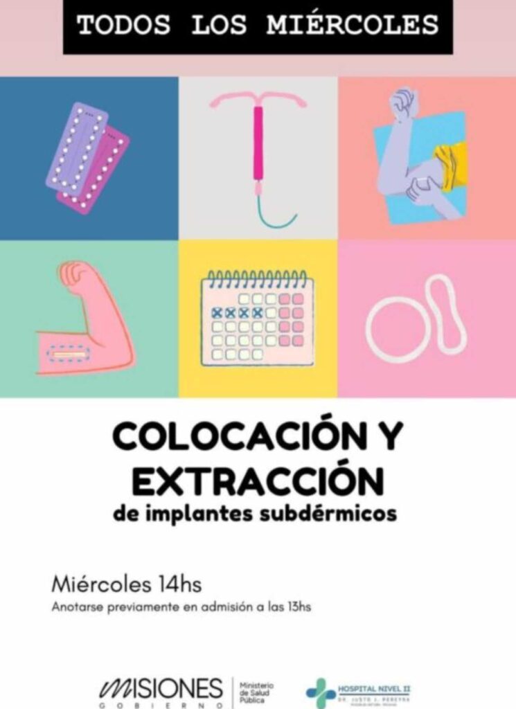 El Hospital Nivel II Dr. Justo J. Pereyra de Aristóbulo del Valle informa que estará llevando a cabo todos los miércoles a partir de las 14 horas, jornada de colocación y extracción de implantes subdérmicos.