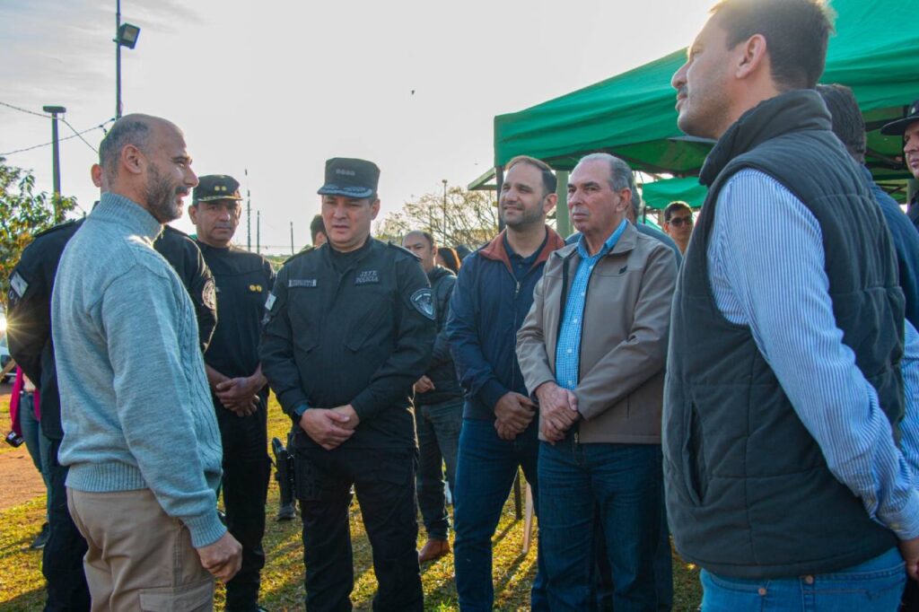 Esta mañana en el populoso B° San Isidro de Posadas, tuvo lugar una nueva jornada de atención sanitaria. En este contexto, el intendente Leonardo Stelatto brindó detalles de las tareas que se están llevando a cabo en los barrios en conjunto con las fuerzas policiales. Lo acompañaron el comisario gral. Sandro Martinez; el diputado provincial, Martín Cesino; el secretario de Salud y Calidad de Vida, Matías Orihuela; entre otros funcionarios.