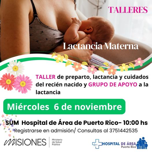 Dichos talleres complementan la asistencia que ofrecen los servicios de salud del hospital, cubriendo aspectos relacionados con la lactancia. Para participar podés registrarte en el servicio de admisión del Hospital o al 3751442535.