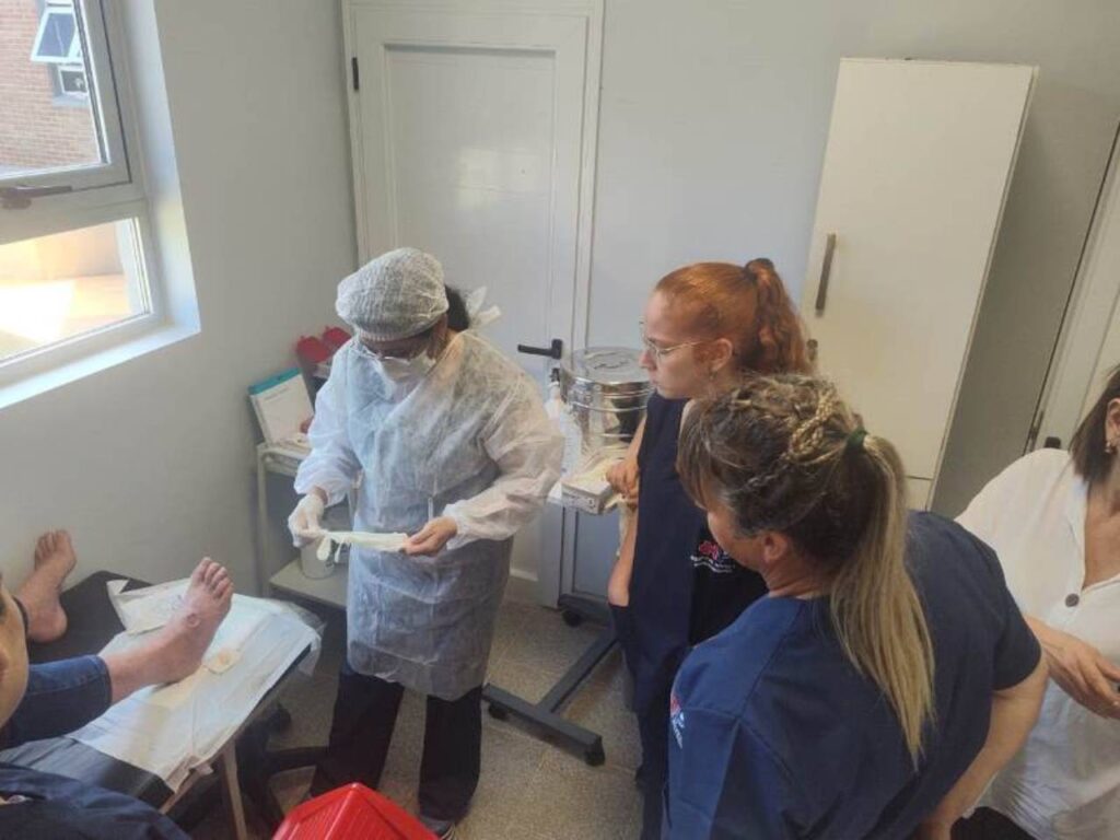 Además, durante la jornada seis enfermeros pertenecientes al hospital local formaron parte de la capacitación donde abordaron temas claves como ser: historia clínica en heridas, esquema TIME, apósitos utilizados en heridas (clasificación), lesiones por presión, generalidades de pie DBT y ostomías los cuales serán los encargados de brindar una respuesta efectiva y de calidad a los pacientes.