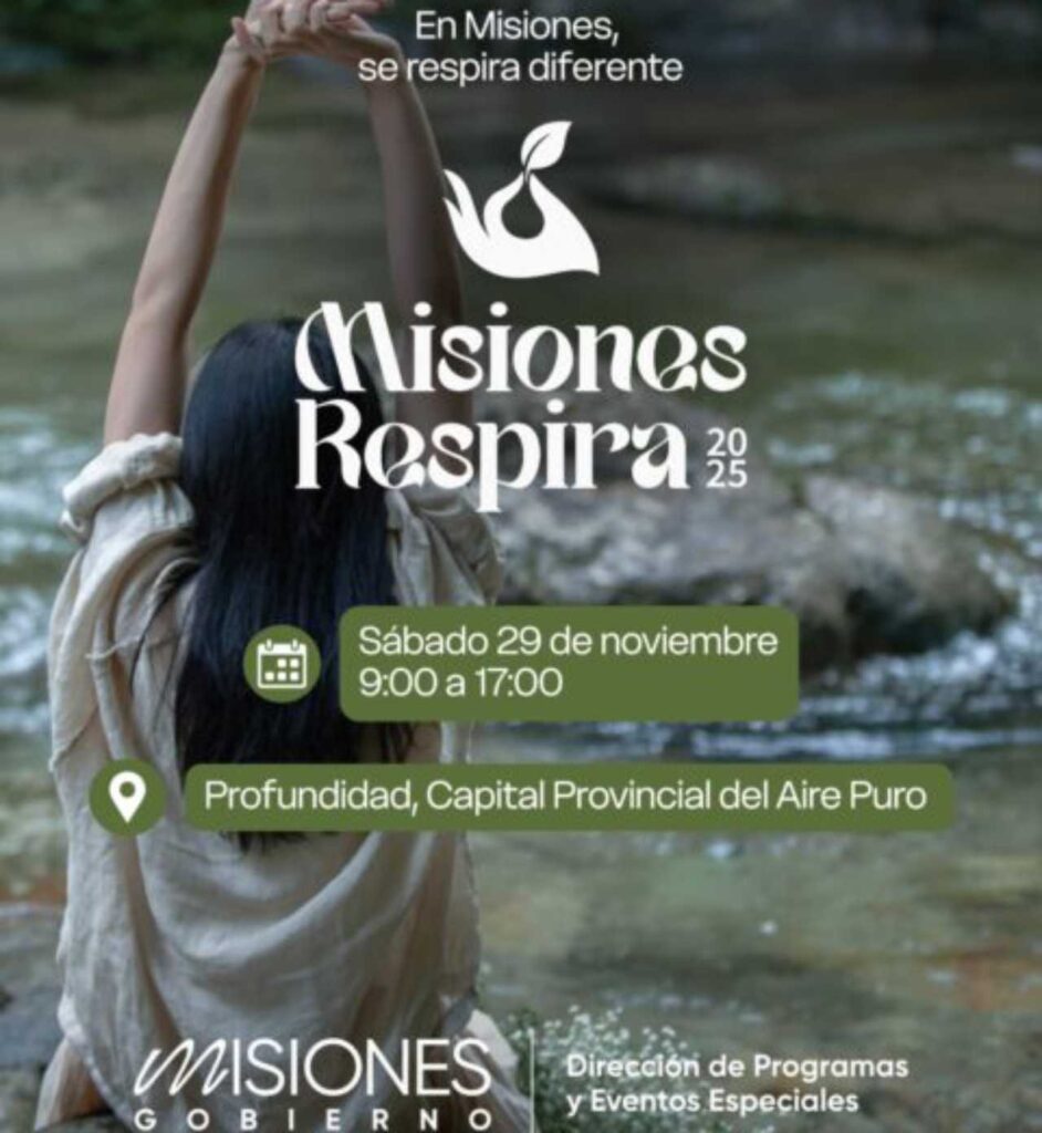 El próximo sábado 29 de noviembre de 9 a 17 hs. se realizará la primera edición de la jornada de salud y bienestar “Misiones Respira 2025” en Profundidad. El orador principal será el doctor Alberto Cormillot, máximo referente argentino en el campo de la nutrición. El evento está organizado por la Dirección de Programas y Eventos Especiales del Gobierno de Misiones, la Municipalidad local y la Reserva Akasha. Además, cuenta con el acompañamiento de los ministerios de Salud Pública, Ecología, Agricultura Familiar, Deportes y Turismo, que sumarán propuestas y especialistas a lo largo de la jornada.