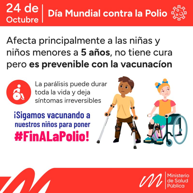Mañana 24 de octubre, se celebra el Día Mundial contra la Poliomielitis, una jornada dedicada a la concientización sobre la importancia de la vacunación y la erradicación de esta enfermedad. En Argentina, donde la poliomielitis ha sido erradicada desde hace 40 años, es decir, sin casos autóctonos, se reafirma el compromiso de seguir trabajando en tareas de prevención y educación de la comunidad.