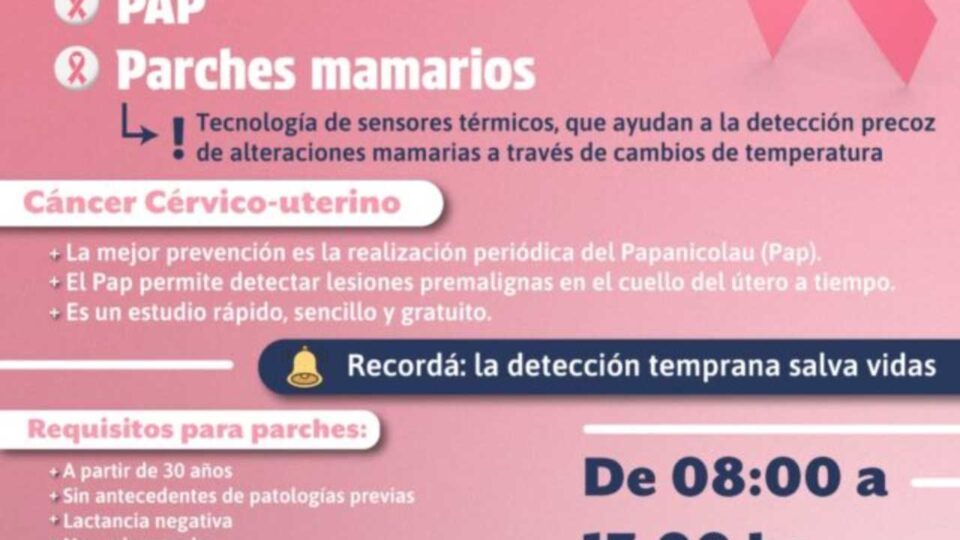 La actividad va a contar con la realización de tomas de muestras de PAP y colocación de parches mamarios.