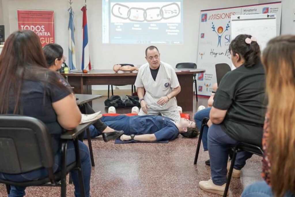 Agentes de salud, docentes, bomberos, policías y agentes municipales participaron de las jornadass Jornadas teórico – prácticas de Reanimación Cardio Pulmonar Intra y Extra y primeros auxilios, que se dictaron en Gobernador Roca y Posadas.