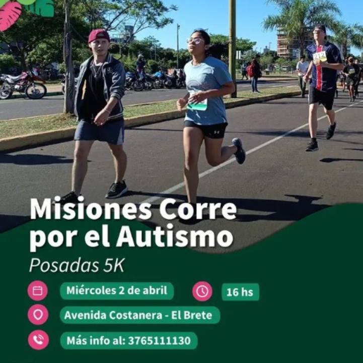 El próximo miércoles 2 de abril, Posadas será sede de una jornada deportiva inclusiva con la carrera «Misiones Corre por el Autismo», una actividad de 5K que busca generar conciencia sobre el Trastorno del Espectro Autista (TEA).