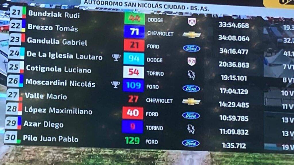 El Misionero “Rudito” Bundziak, había largado en el cajón 14 y llego a estar décimo en la final. Algunos incidentes en pista y evidentes problemas en su auto, lo relegaron a la posición 21 (sujeto a la técnica).