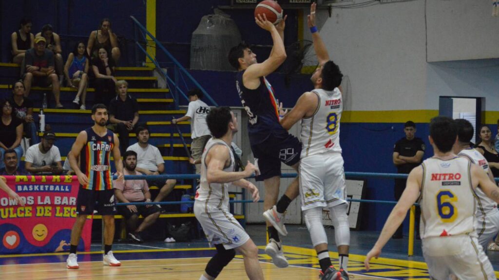 Zandomeni llegó y convirtió las veces que quiso y de la distancia que quiso, pese a una fuerte defensa auriazul. Para capear la diferencia, Santino Clara se corrió sobre el final del tercer cuarto la cancha para meter un doble que acerque posiciones pero al descanso corto Capri se fue con 19 arriba.