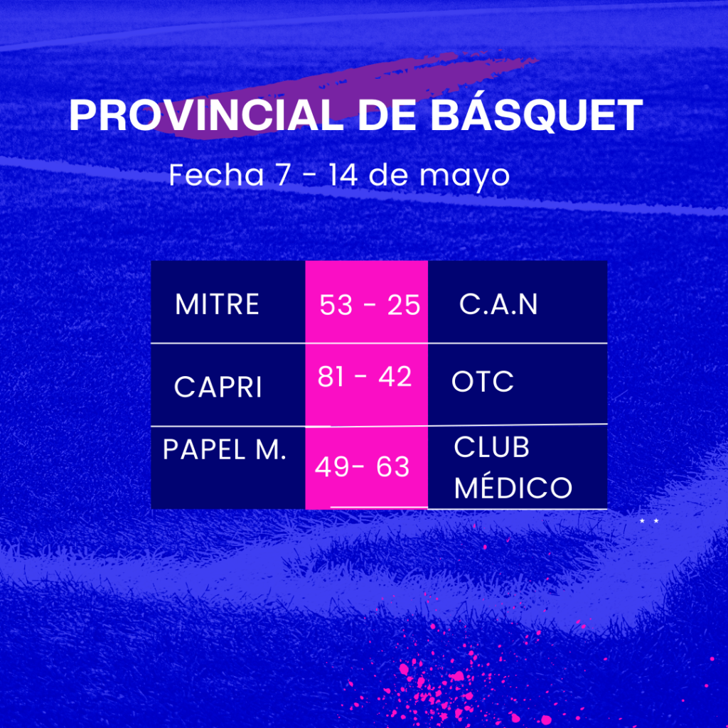Tras un inicio de fecha con partido único el jueves 11 con victoria de Tokio (75) sobre Luz y Fuerza (69), este domingo finalizó la octava fecha con los 3 partidos restantes correspondientes al torneo provincial.
