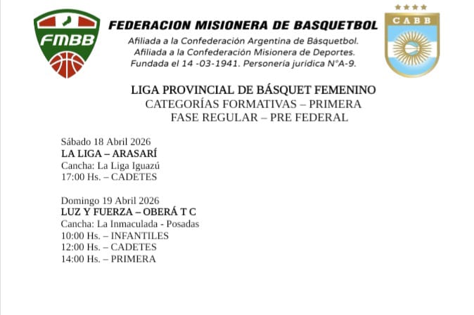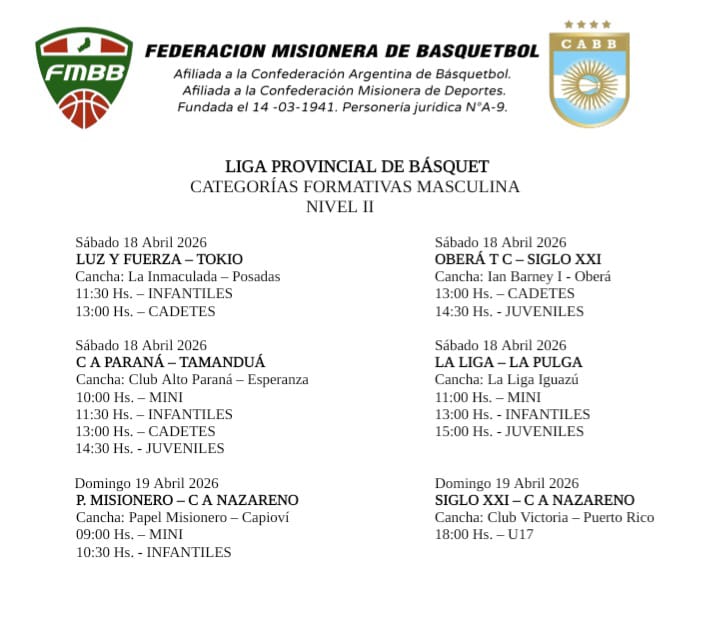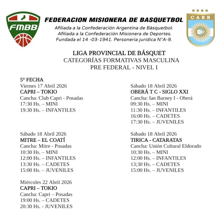 Dándole continuidad a la profusa actividad basquetbolística que se desarrolla en la provincia, la Federación Misionera programó la fecha de este fin de semana, en categorías formativas masculina, nivel I y II y también en la formativas femeninas que se disputarán en distintas ciudades de la tierra colorada.