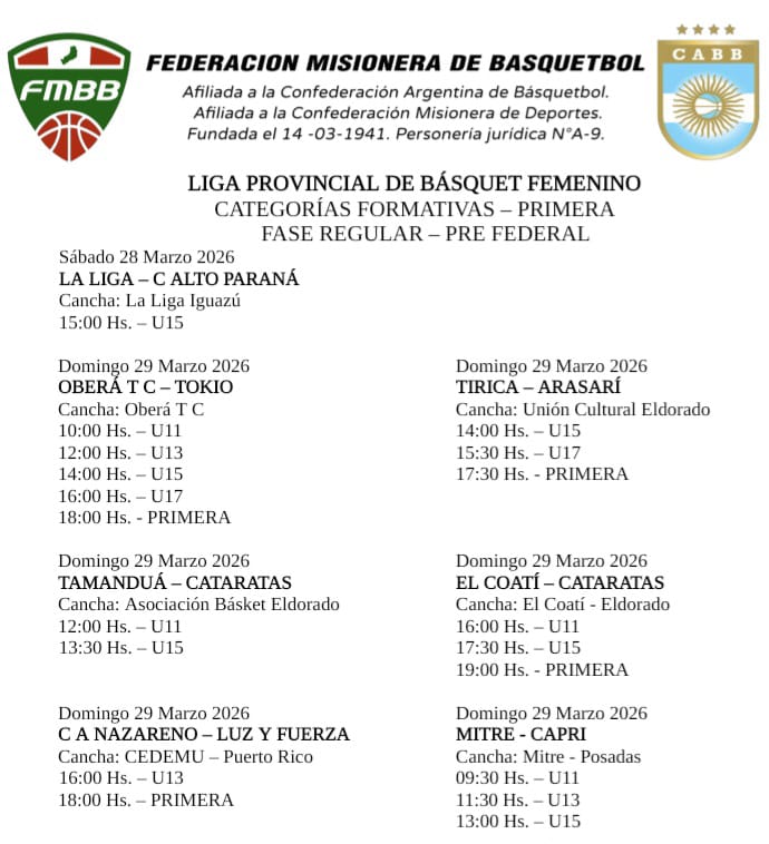 La segunda fecha del femenino tendrá estos encuentros con sede en Eldorado, Iguazú, Posadas, Oberá y Puerto Rico.