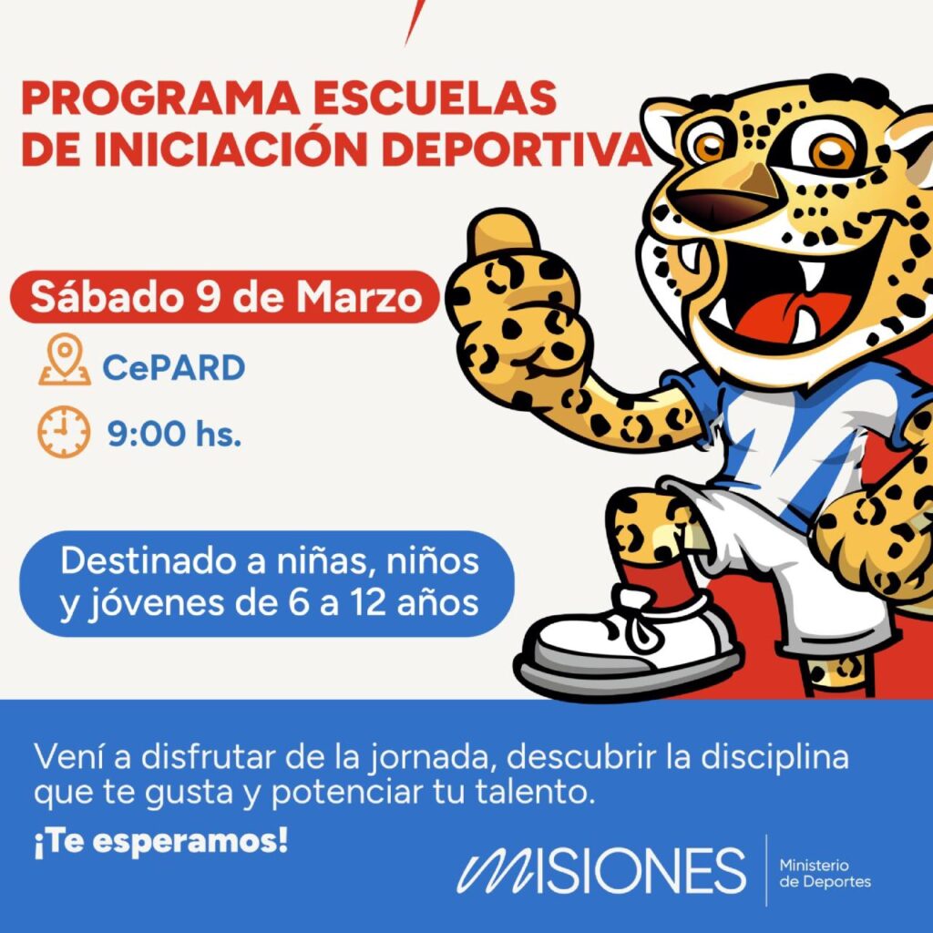 El sábado 10 de este mes a las 9h se realizará la presentación del programa Escuelas de Iniciación Deportiva que ofrecerá este año el Ministerio de Deportes en el Centro Provincial de Alto Rendimiento Deportivo (CePARD), en la ciudad de Posadas.