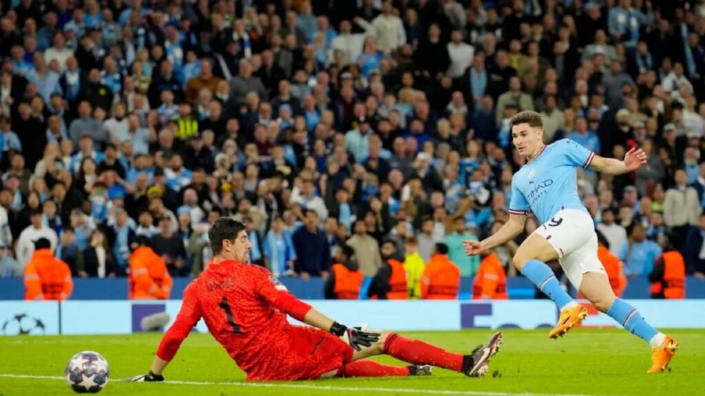 Con el 3 a 0, el partido estaba sentenciado y solamente bastaba esperar que pasen los minutos. Con algunos cambios, el Manchester fue guardando energías y renovando el aire del equipo. A falta de dos minutos para llegar a los 90, el entrenador español decidió mandar a la cancha al argentino Julián Álvarez, en reemplazo del noruego Erling Haaland, con un cambio que parecía irrelevante, debido al poco tiempo que quedaba para el final del partido.