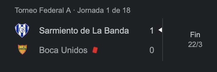 Su rival será Sarmiento de La Banda que hoy ocupa el puesto 1 en la tabla y ganó 3 de los 3 partidos que disputó por lo que ostenta el puntaje ideal, seguido por San Martín de Formosa que derrotó a Crucero el último fin de semana.