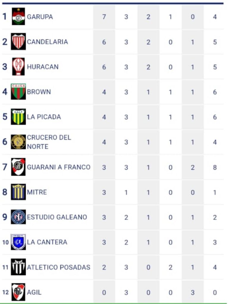 Por ahora el que manda es el equipo de la vecina Garupá con siete unidades, aunque la punta puede estar en riesgo cuando Mitre complete las dos fechas pendientes.