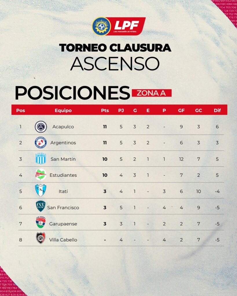 Crucero, La Picada y La Cantera en la “A” y Sporting, Acapulco y Argentinos son los líderes en la “B”