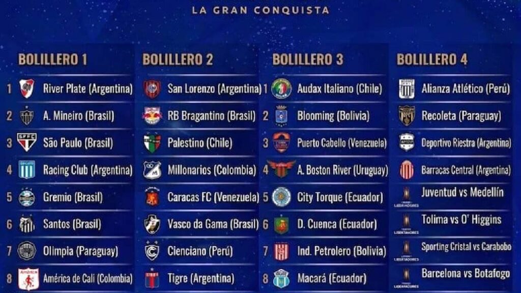 A continuación, así quedaron los bombos tras definirse la fase previa de duelos directos entre equipos de Ecuador, Colombia,