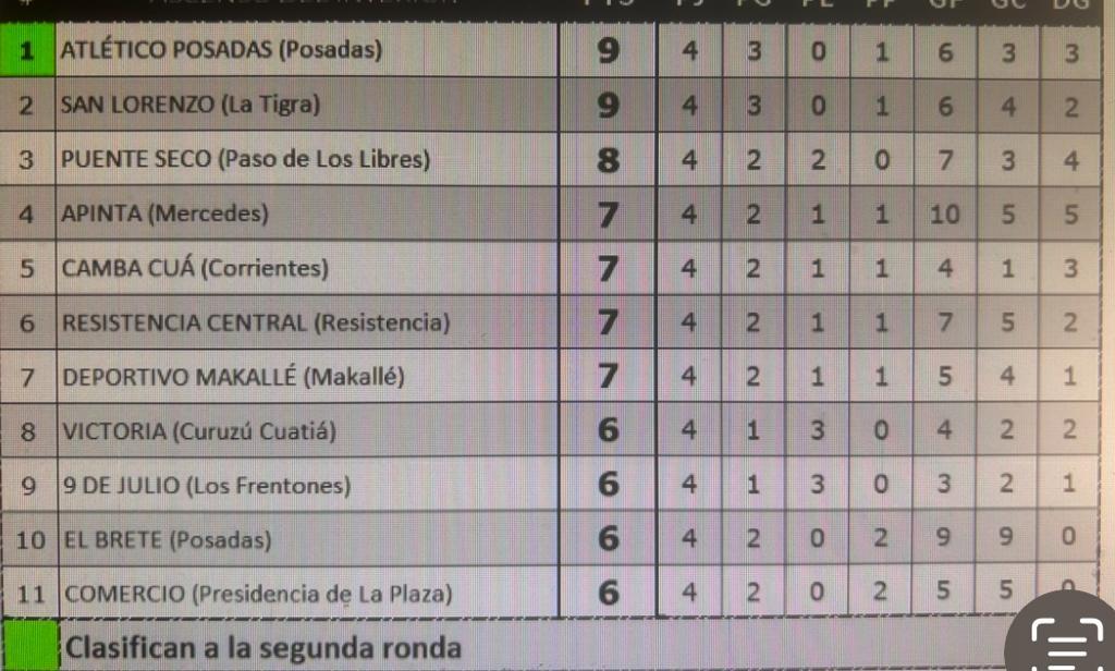 Los nueve puntos cosechados hasta el momento por Atlético Posadas lo dejan en la primera posición de la tabla de los “mejores segundos” con 9 unidades. La buena “cosecha” del Decano, lo posiciona entre las 15 zonas de la región Litoral Norte del Regional amateur 2023/2024.