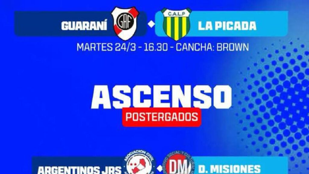 La Liga Posadeña oficializó la suspensión de los partidos previstos para este domingo, tanto de la Súper Liga como del Ascenso. El encuentro entre Guaraní y La Picada fue reprogramado para el martes 24 de marzo, mientras que los compromisos correspondientes al Ascenso aún no tienen fecha confirmada.