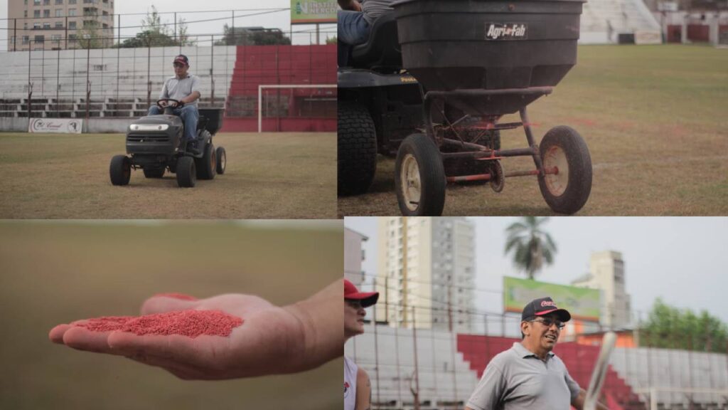 Guaraní comenzó hoy con el resembrado césped del estadio Clemente Argentino Fernández de Oliveira.