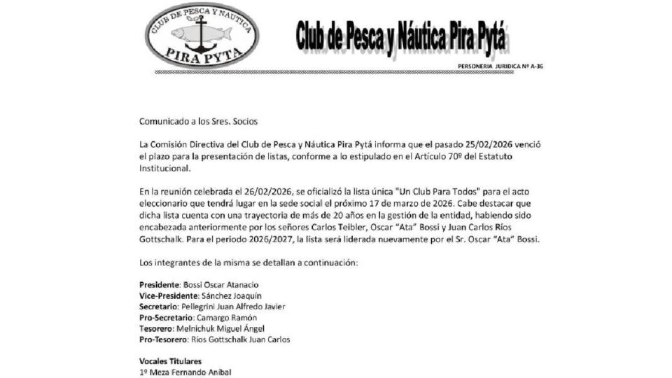 Encabeza la única lista oficializada para la la asamblea que se realizará en el mes de marzo
