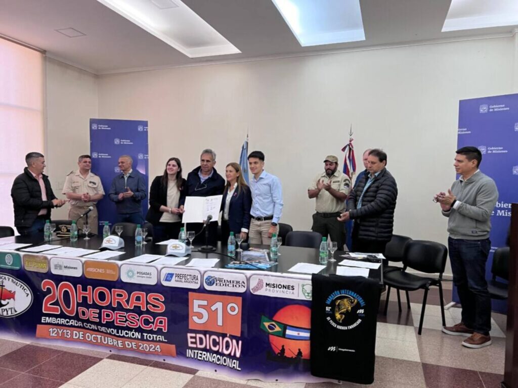 La presentación tuvo lugar este viernes 4, en la sala de prensa de Casa de Gobierno, con la presencia de los ministros de Turismo, José María Arrúa; y de Desarrollo Social, Fernando Meza; del presidente del Club de Pesca y Náutica Pirá Pitá, Oscar Bossi; del presidente de la Subcomisión de Pesca, Hugo Warenycia; del presidente del IMAS, Joaquín Sánchez; del senador nacional Carlos Arce; del diputado nacional Daniel Vancsik; junto a diputados provinciales y el jefe de Operaciones de Prefectura, prefecto Carlos Aquino.