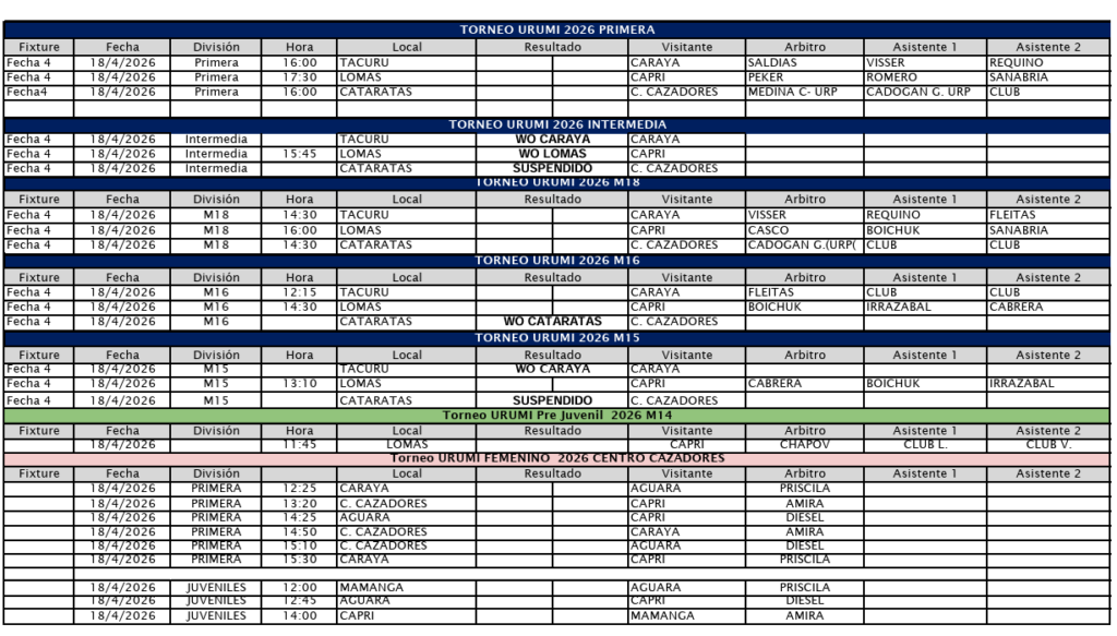 Lomas -Capri, Tacurú- Carayá y Cataratas- Centro conforman la grilla de la cuarta fecha de rugby