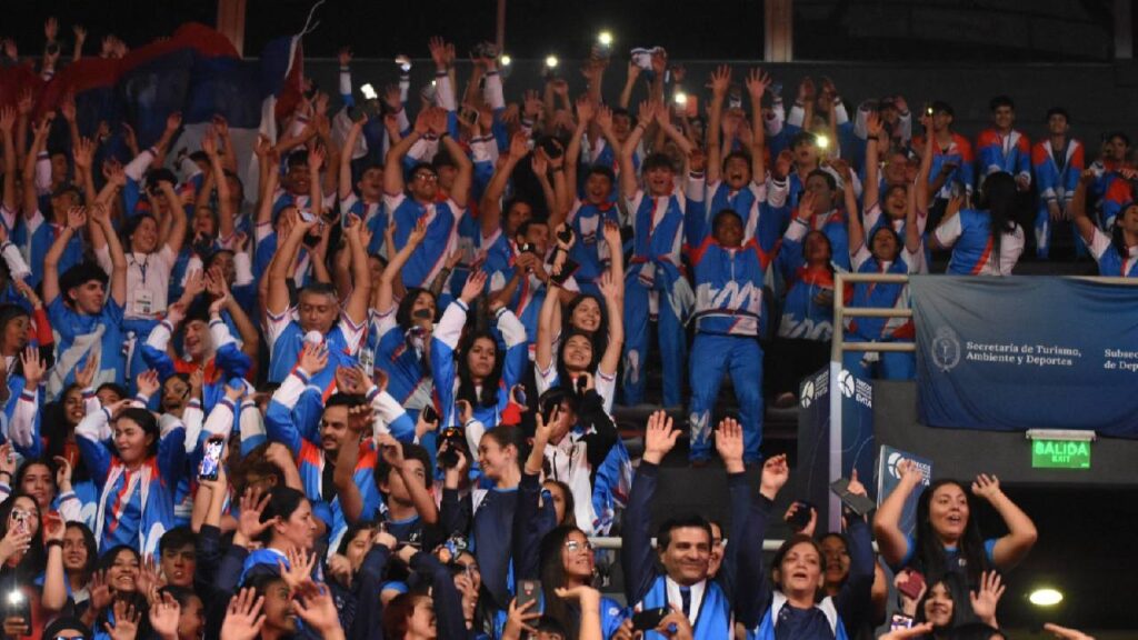 Las delegaciones provinciales fueron representadas en el epicentro de la ceremonia por dos deportistas que, en el caso de Misiones fueron Carlos Sánchez, de la disciplina Vóley sentado, e Indiana Poliszczuk, de Gimnasia rítmica. Ambos tuvieron una ubicación privilegiada, a un lado de la “Peque” Paula Pareto, quien fue la encargada de portar la bandera nacional.