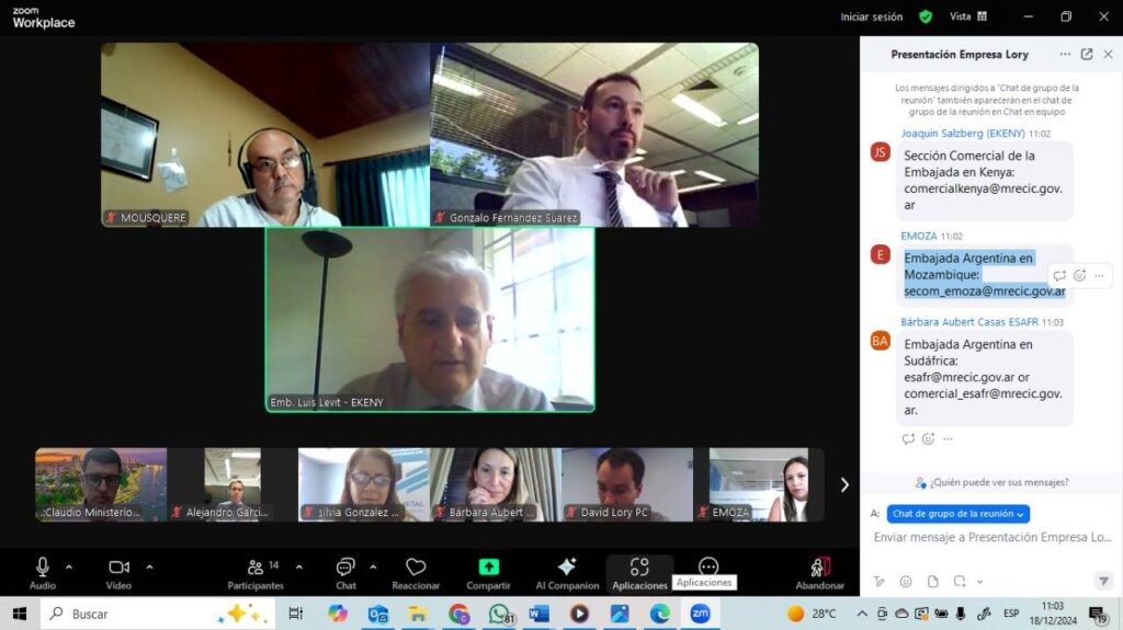 El Ministerio de Industria de Misiones, en colaboración con la Cancillería Argentina, organizó esta semana una reunión virtual junto a las Embajadas Argentinas presentes en Kenia, Mozambique y Sudáfrica.