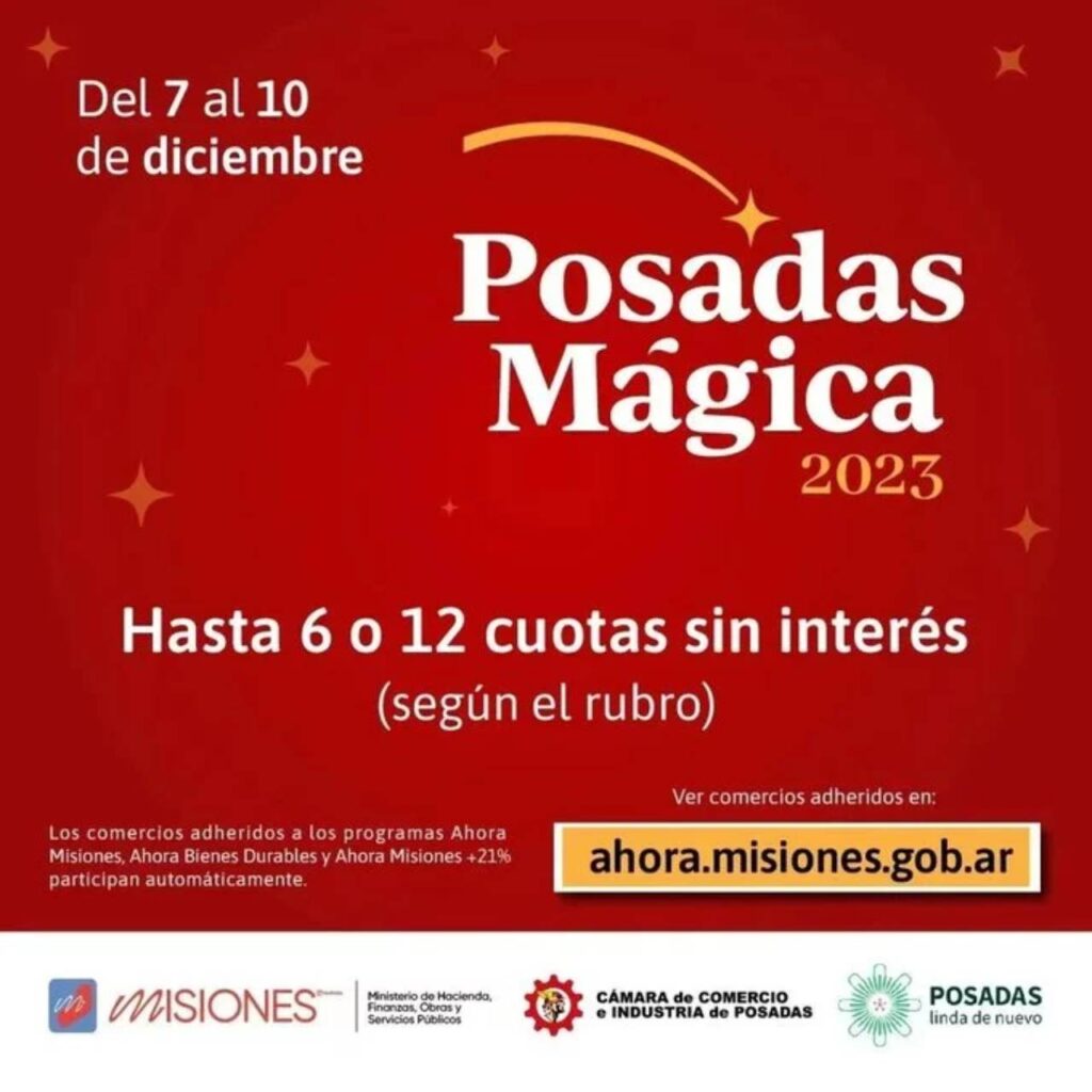 Hoy y hasta el domingo 10 estará vigente el programa especial denominado «Posadas Mágica» permitirá realizar compras en hasta 6 cuotas sin intereses, en todos los rubros comprendidos en el programa Ahora Misiones, incluyendo también los rubros de hotelería y gastronomía.