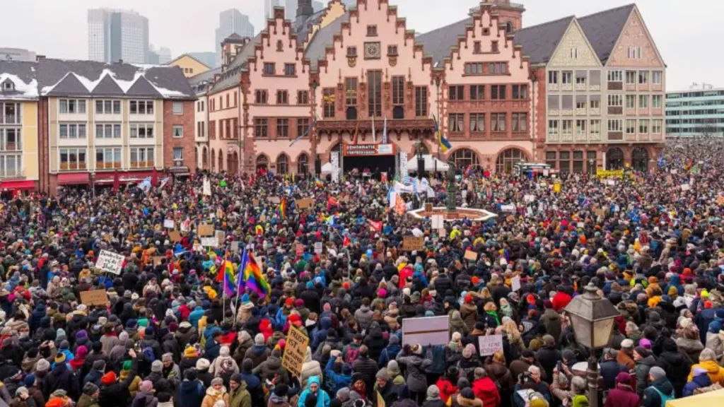 «Ningún ser humano es ilegal» decía una de las banderas que portaban los protestantes en Frankfurt, donde se reunieron más de 35.000 personas. Otras de las frases que se podian leer son «Nunca más 1933» y «El odio no es una opinión». El alcalde de la ciudad, Mike Josef, indicó que están «unidos como demócratas contra los misántropos de nuestro país», contento por ser mayoría.