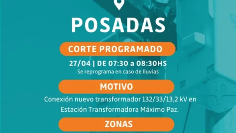 Mañana habrá cortes de energía en varios sectores de Posadas