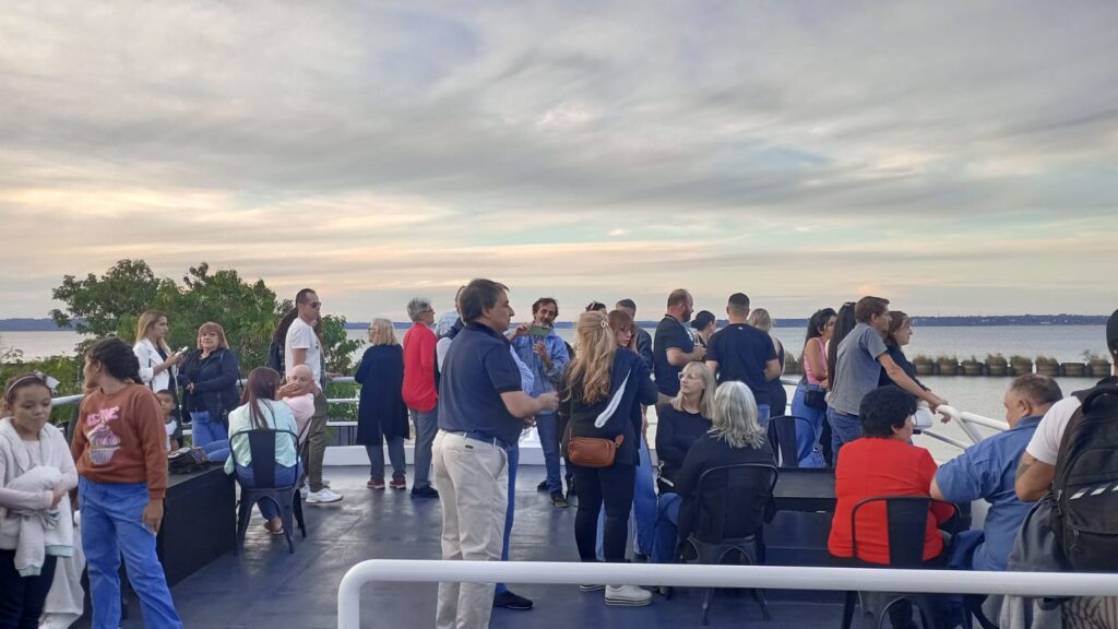 El paseo incluyó también un servicio de catering a bordo, con platos regionales, como chipa y mbeyú. El catamarán también se acercó a la zona del anfiteatro Manuel Antonio Ramirez y bordeó toda la costanera.