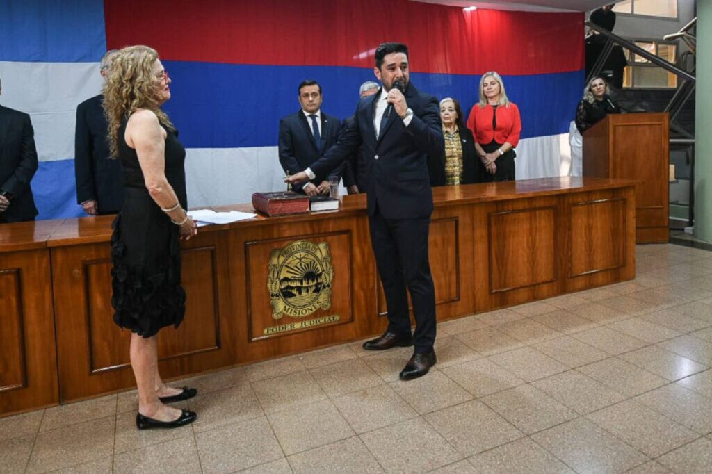 Víctor Hugo Marinoni, secretario general administrativo, procedió a la lectura del decreto de designación y la presidente del Superior Tribunal de Justicia tomó juramento a Giménez quien lo hizo por Dios, la Patria y los Santos Evangelios. Además Giménez exclamó “Por mi honor, por mis padres, por mi familia, por el amor de mis hijos y por respeto al pueblo misionero… sí juro”.