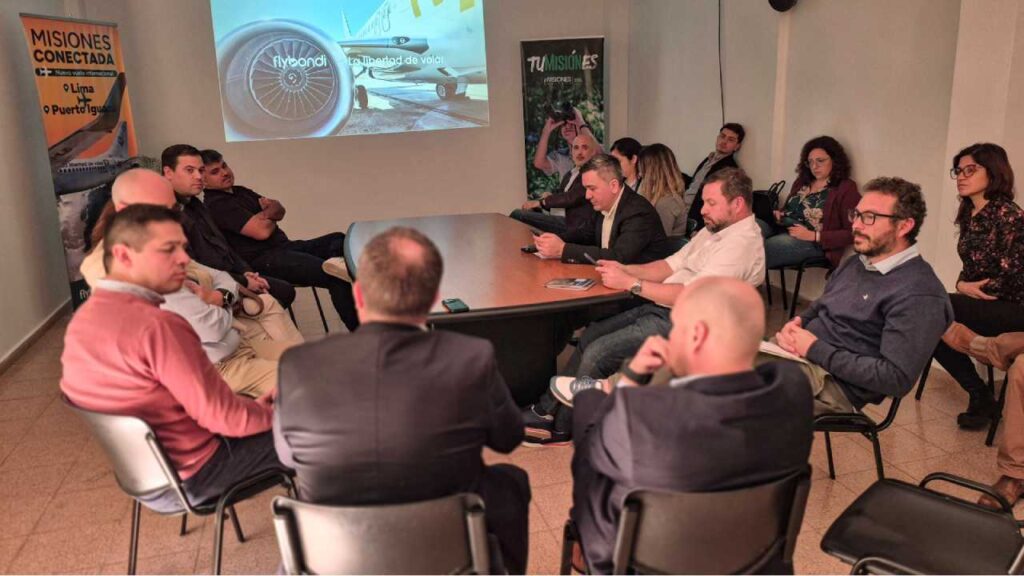 Durante la reunión, se presentó a los actores del sector privado la operatividad de la nueva ruta aérea Lima-Iguazú, con la presencia de Mauricio Sana, CEO de la aerolínea que operará el vuelo directo entre ambas ciudades. Esta nueva conectividad vincula a Misiones con el hub aéreo más importante de Latinoamérica, que conecta con más de 70 destinos en 23 países.