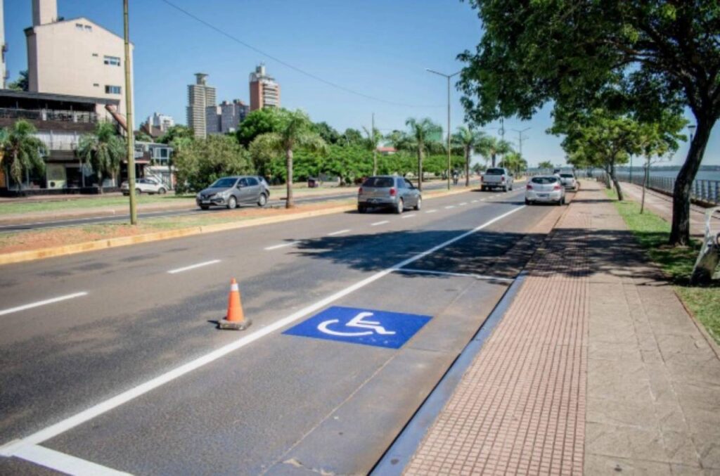 Demarcan espacios para motos y personas con discapacidad en la costanera