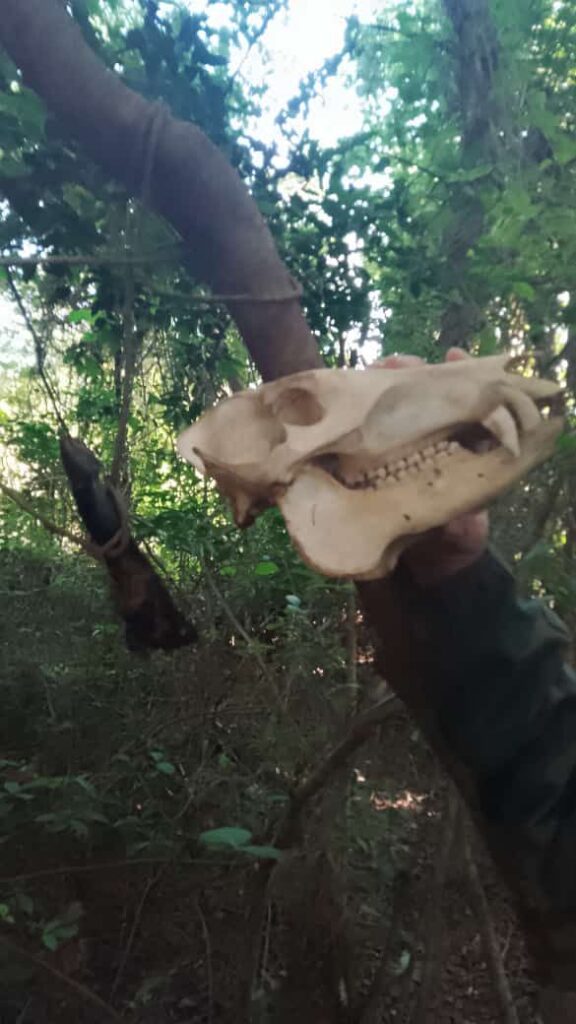 La patrulla se topó luego con restos de dos pecaríes labiados, cuatro saleros y dos sobrados o esperas de los furtivos.
