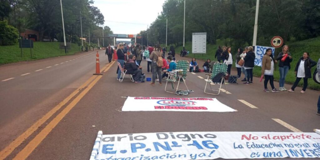En San Vicente, un grupo nuemeroso de educadores marchó por la ruta nacional 14 ycortó la circulación vial frente a la IEA Nº 3 ubicada en el kilómetro 1958. Similar metodología utilizaron los docentes en Cerro Azul y Aristóbulo del Valle, aunque con características propias. En cuanto a la ruta 12 los cortes y movilizaciones se registraron en el peaje de Colonia Victoria, Gobernador Roca y El Alcazar.