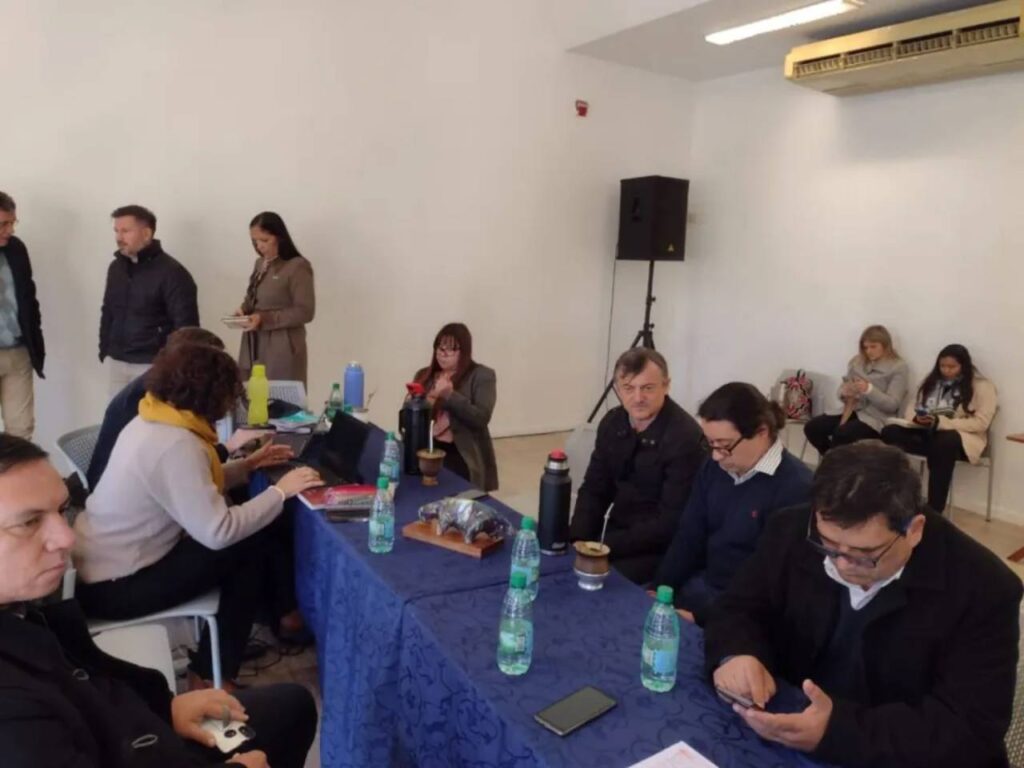 Los gremios que integran la mesa de diálogo docente, Semab CEA- UDA-Amet, Sadop, (CGT), y UDPM y SIDEPP (Cetera CTA) se reunieron hoy en el Salón Ramón Ayala del Centro de Convenciones de Posadas, para dar continuidad a la discusión de recomposición salarial para el mes de mayo, junto a los ministros de Educación Ramiro Aranda, de trabajo Silvana Giménez, de Hacienda Adolfo Safran, y la Pte. del C.G.E. Daniela López y su equipo de trabajo, además de representantes de los sindicatos.